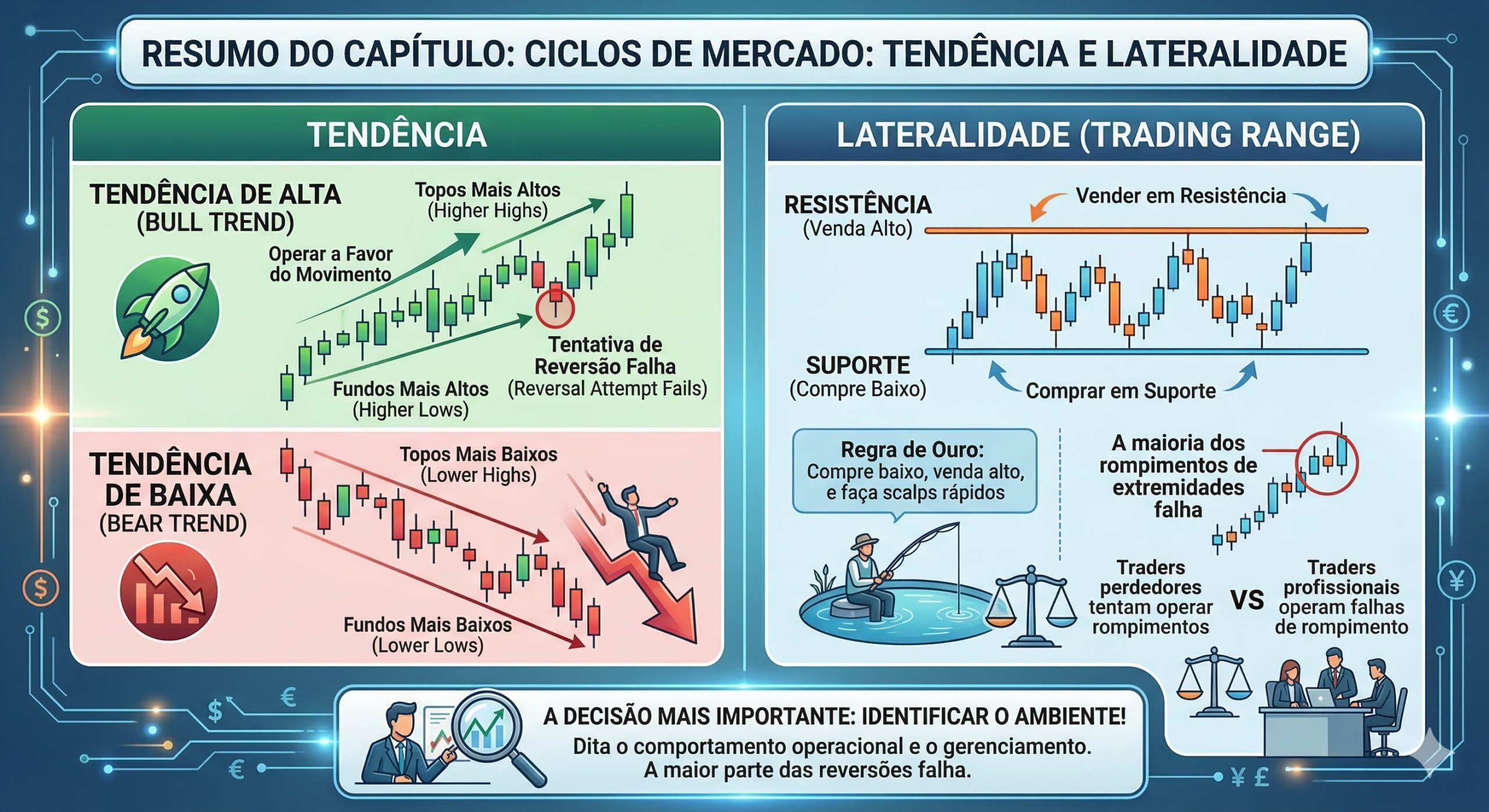 Qual é a regra principal recomendada pelo instrutor para operar em um ambiente de Lateralidade (Trading Range)?