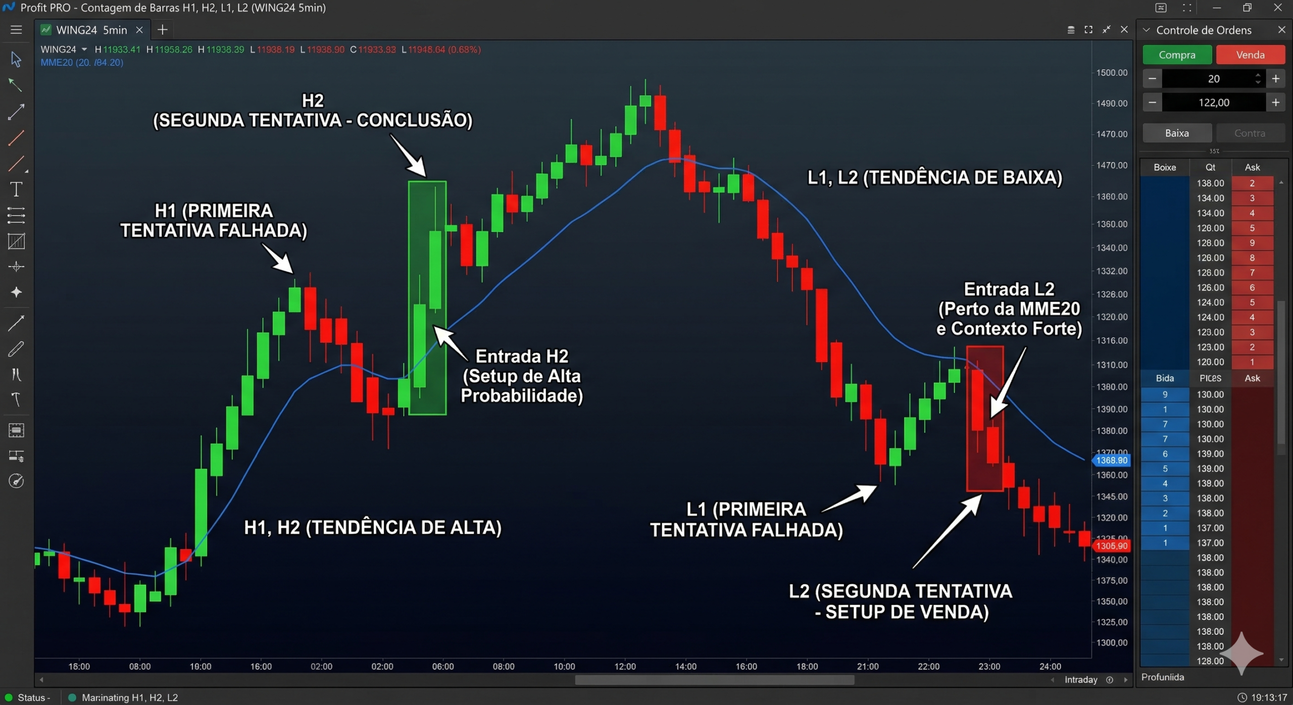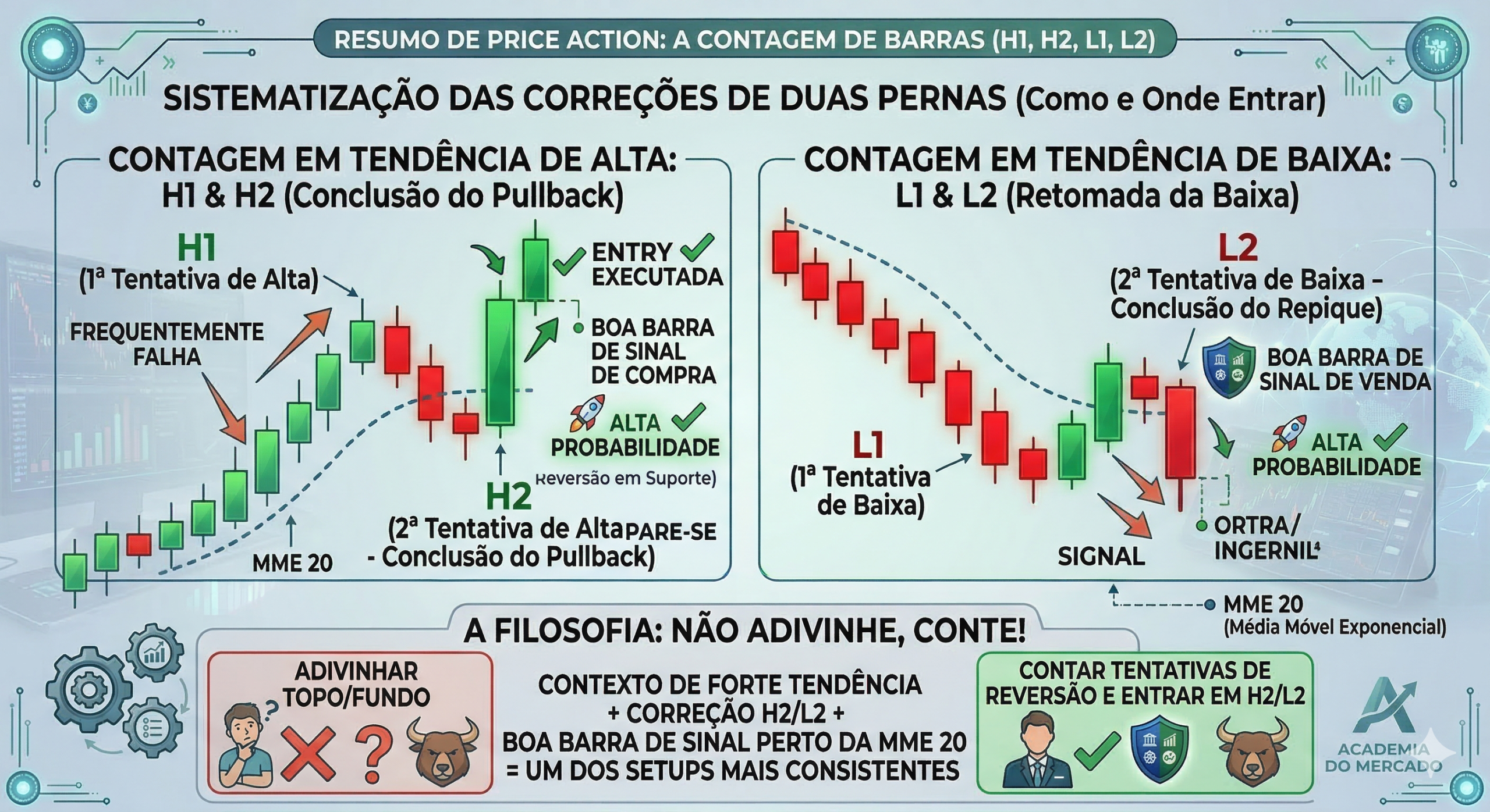 No sistema de contagem de barras, o que significa uma ‘H2’ (High 2) em uma tendência de alta?