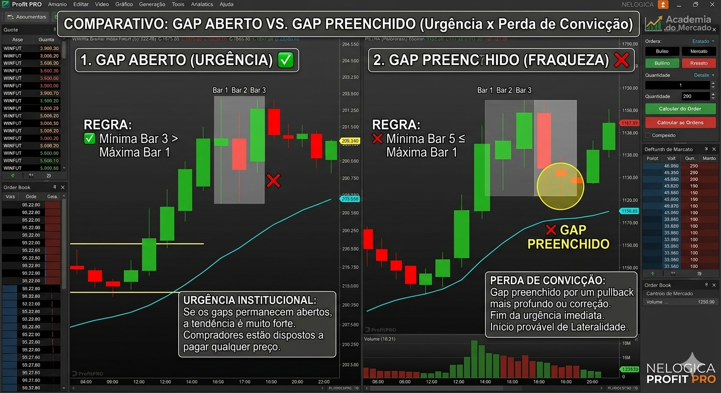 Segundo o Price Action ensinado, o que caracteriza um ‘Gap de Barra’ intradiário em um movimento de alta?