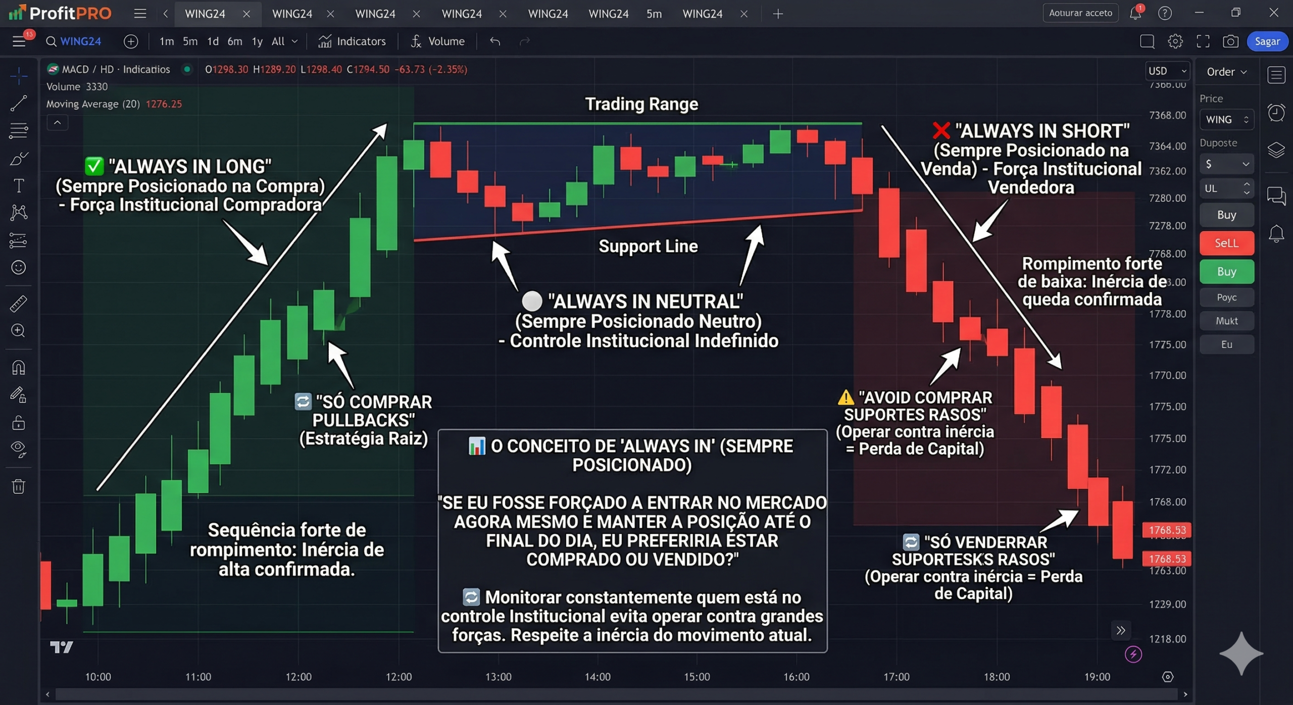 Qual é o objetivo principal de identificar a direção ‘Always In’ (Sempre Posicionado)?