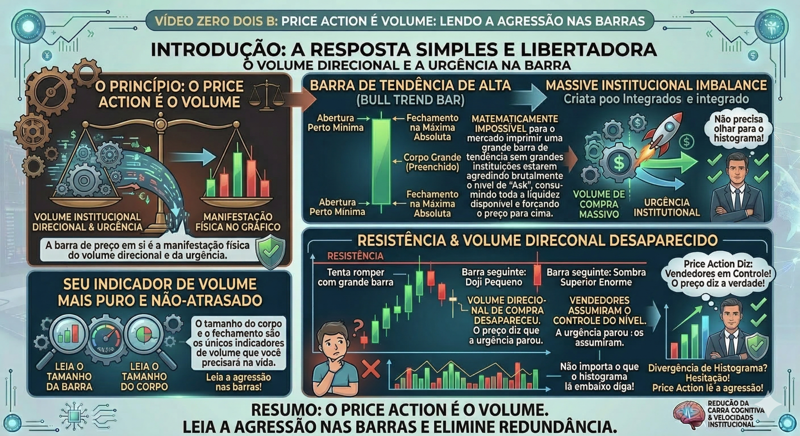 No Price Action, como um trader identifica o “volume direcional” sem precisar olhar para um histograma na parte inferior da tela?