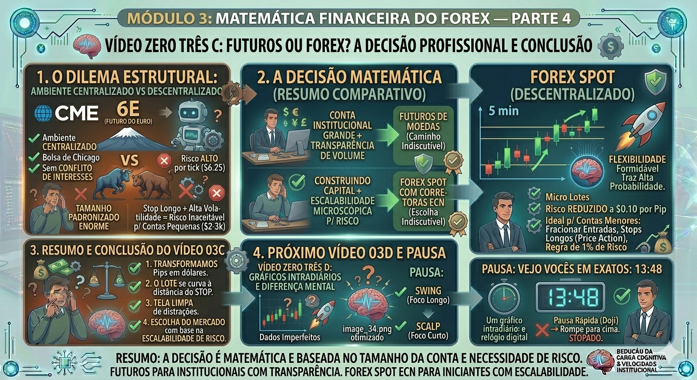 Qual é a principal diferença estrutural entre operar moedas através de Contratos Futuros (ex: CME 6E) e através do mercado Forex Spot?