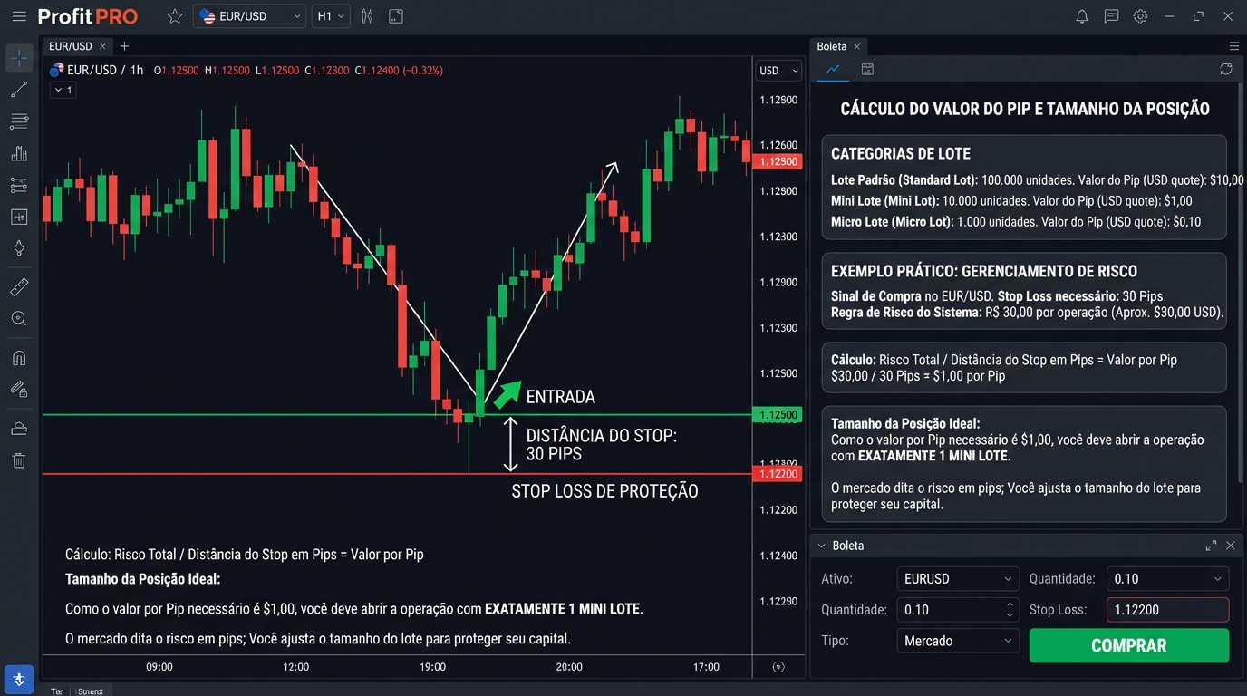 Segundo a metodologia Price Action, como deve o trader determinar o tamanho da sua posição (lote) antes de abrir uma operação?