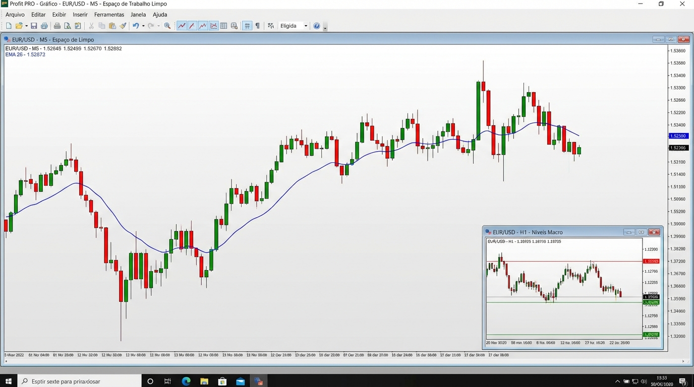 Por que razão é aconselhado manter um segundo gráfico minimizado (de 15 ou 60 minutos) juntamente com o gráfico principal de 5 minutos?