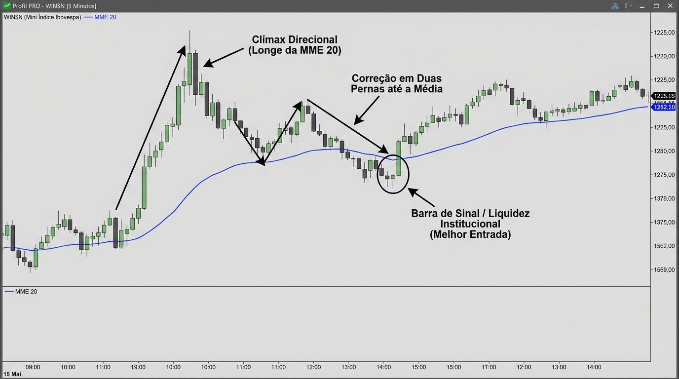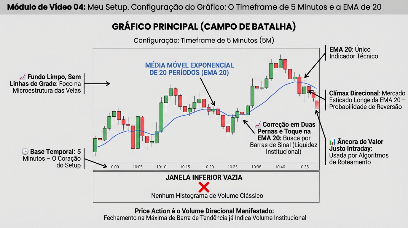Na prática diária, como o instrutor utiliza a EMA de 20 períodos em seu gráfico limpo?