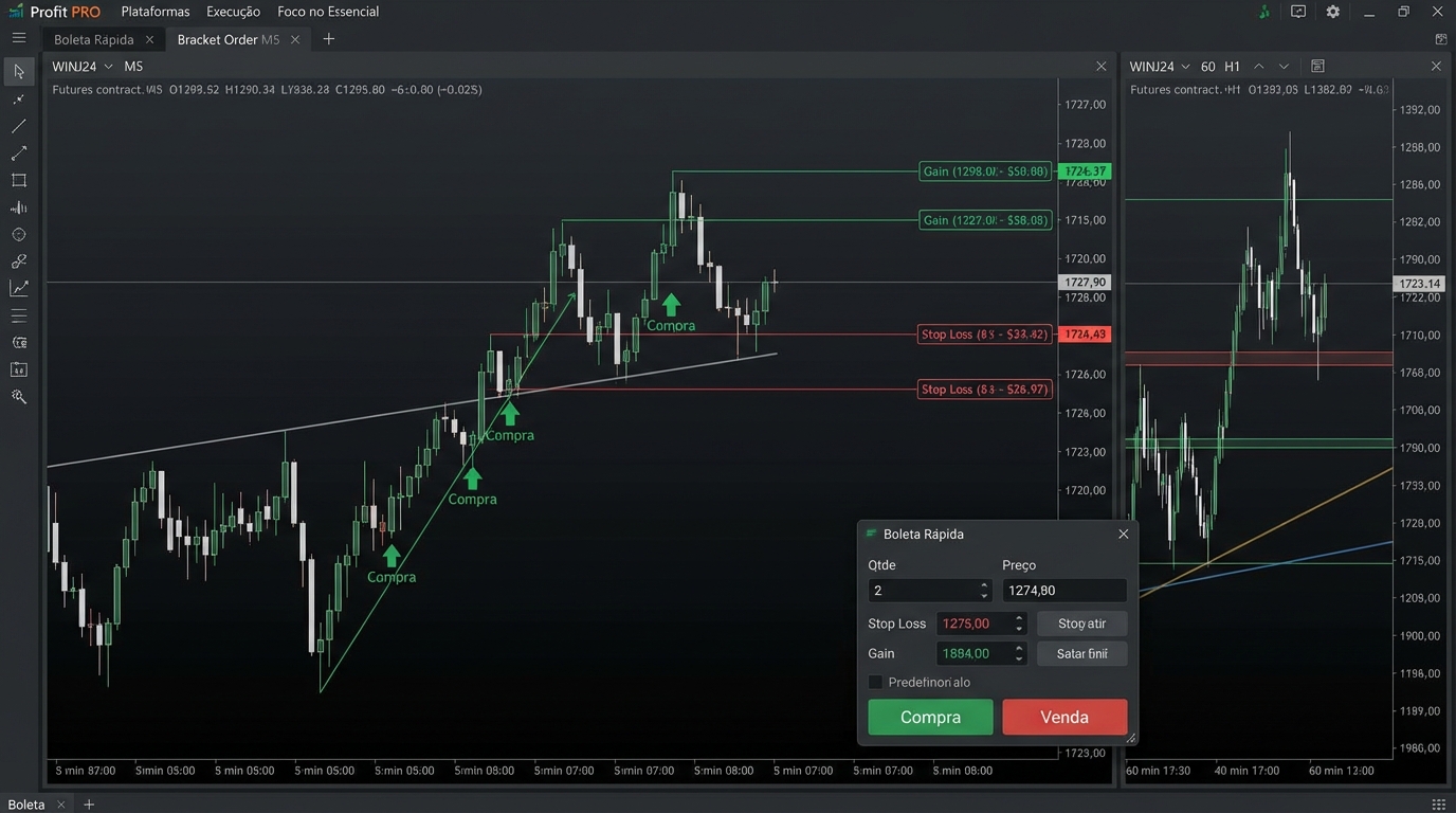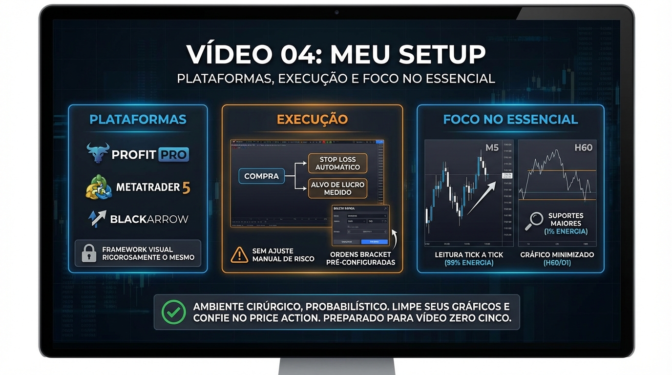 Como a execução técnica das ordens (a ‘boleta’) é configurada neste setup para evitar que o trader sabote a própria operação emocionalmente?